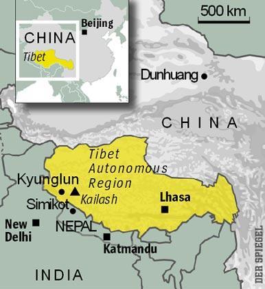 * ‘발견설’의 진위(眞僞) 일년 만에 다시 들어간 라싸는 못 보던 큰 빌딩이 솟아 있는 등의 현대화, 중국화가 빠르게 진행되고 박물관도 새로 개관하는 등의 변화가 있었지만 그런 것에 관심 둘 시간도 없이 바로 발견설의 진위에 대한 자료조사에 들어갔다. 그렇지만 정작 몇몇 지인들에게 문의해 본 바로는 그들은 금시초문이라는 태도였고, 카이라스 행의 입산 허가도 당분간 올스톱(all stop)이었다. 하여서 당시 이 사건이 게재된 신문과 잡지를 수소문하여 이미 서점에서 수거된 「지리지식(地理知識)」이라는 잡지를 도서관에서 어렵게 찾아낼 수 있었다.