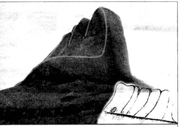 On several pyramidal structures of ancient builders left a trace in the form of drawings of faces (Photo 12). These people do not look at the face Lemurian, who had, according to some scientists, a small nose and big eyes. This picture reminds a face of the atlas - human civilizations that preceded us. Atlanta different from us, as described in Buddhist literature, a long tongue, they had 40 teeth, webbed fingers, 3-5 meters height and more.