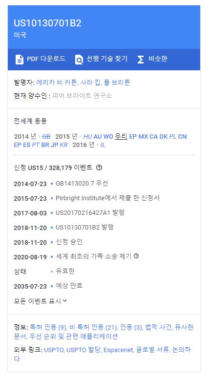 피어 브라이트 연구소 의 코로나 바이러스 미국특허청 승인 정보
