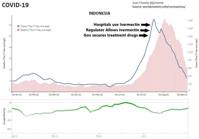 백신으로 유발된 대유행은 통제 불능의 소용돌이에 휩싸일 수 있었지만 일본은 백신과 마스크에만 의존하는 미국과 다른 실패 국가들과는 다른 일을 하기로 결정했습니다. 지난 9월, 국가는 이버멕틴을 배치하고 환자들을 보다 품위 있게 치료하기 시작했습니다. 케이스 로드가 급격히 떨어졌습니다. 도쿄에서는 8월 중순에 거의 6,000건의 사례가 발생했습니다. 9월 말까지 사건 수는 11개월 만에 최저인 100명 미만으로 떨어졌습니다. AP 통신은 백신과 마스크에 힙 칭찬에 노력 covid 및 기타 질병의 거대한 파도로 이어지는, 이러한 자료는 통계적 년 이상을 위해 나라를 실패했다하더라도, 갑작스러운 성공.