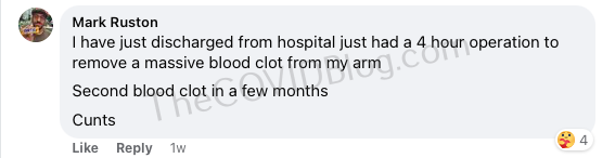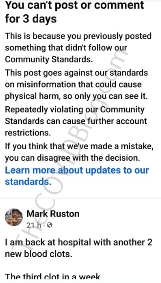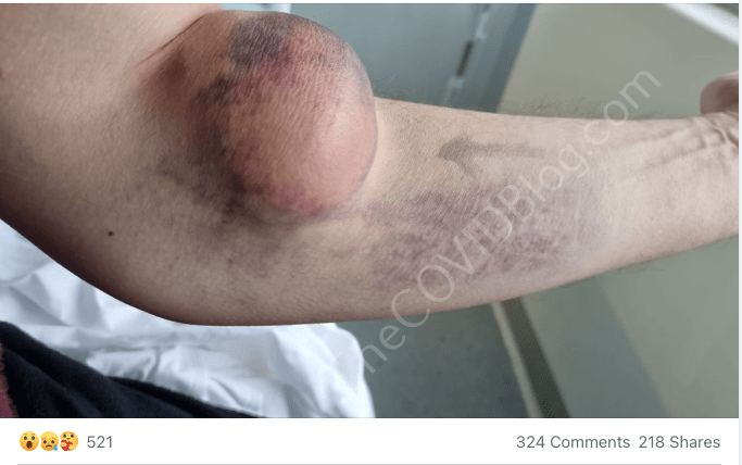 영국 남성이 AstraZeneca 이후 팔에 야구공 크기의 혈전이 생긴 끔찍한 사진을 공유한 후 Facebook에서 일시적으로 금지되었습니다.
